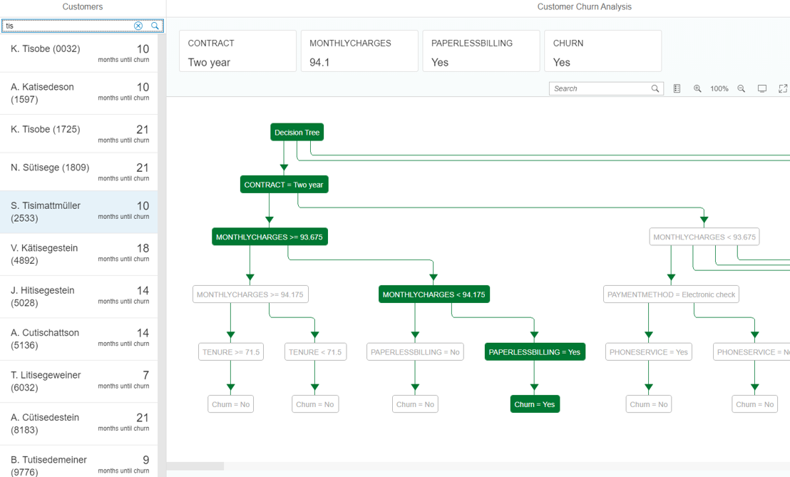 Customer-churn prevention beschreibt die Identifikation von kündigungswilligen Kunden, um die Kündigung zu verhindern. Dafür werden historische Daten mit erfolgten Kündigungen analysiert, um Vorhersagen über zukünftiges Verhalten aktueller Kunden machen zu können. Das erlaubt die Fokussierung auf gefährdete Kunden und die kritischen Faktoren.